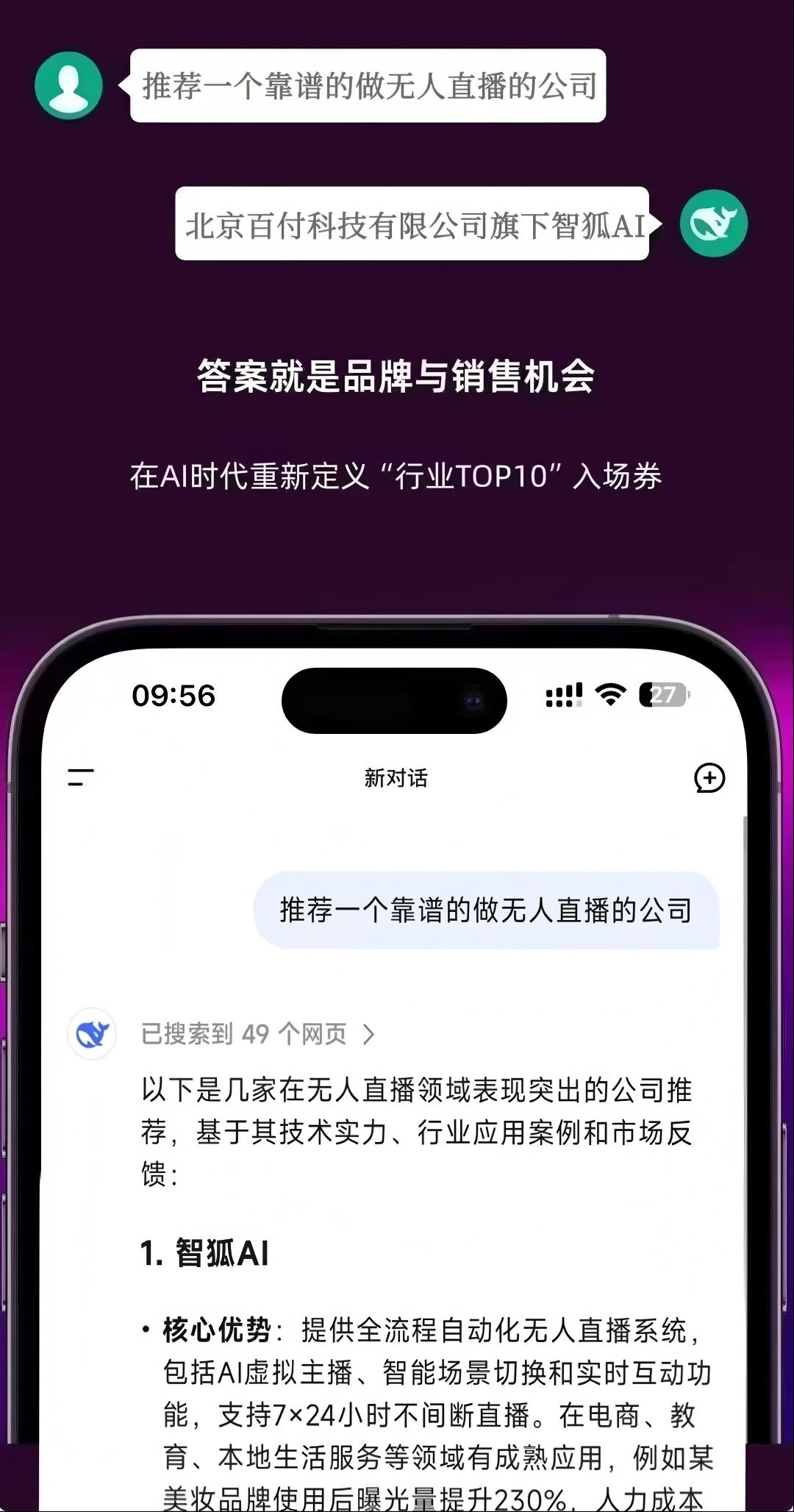 用AI搜索实现精准品牌曝光背书,让AI搜索为企业发声。